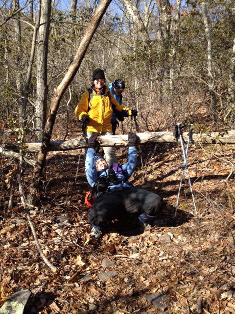 We came across a down tree in the middle of the trail and Dirigo got to practice her MovNat moves!