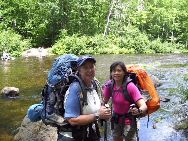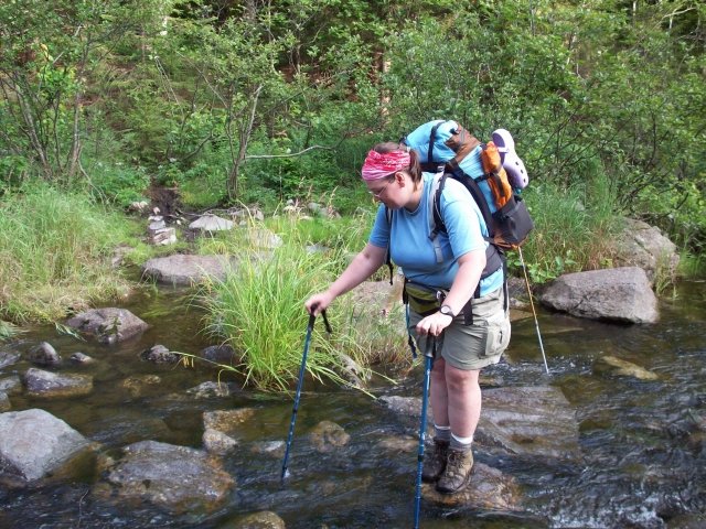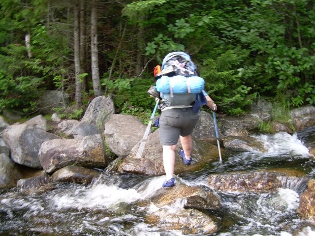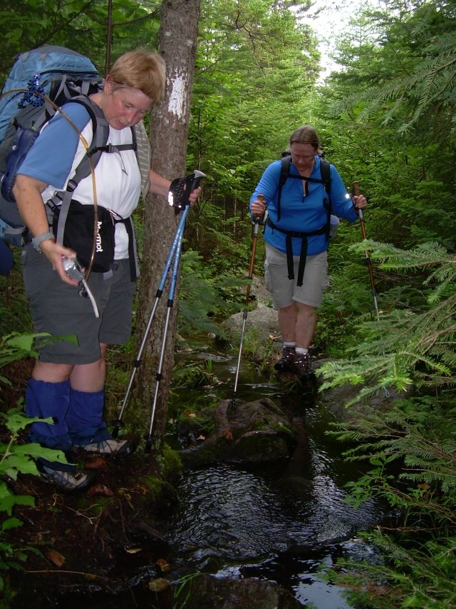 When we came to the stream crossing, Dirigo put on her crocs and easily rock hopped the big boulders to the other side.