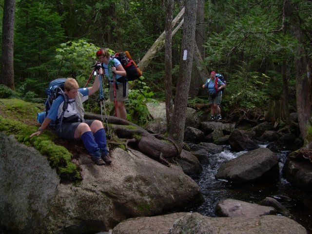 Forest Gimp and Piper also stopped at the Rainbow Spring campsite. We told Forest Gimp that we had been leaving messages in the shelter registers for Barefoot Sage. Forest Gimp told us that Barefoot Sage was in Andover when she was in Monson.