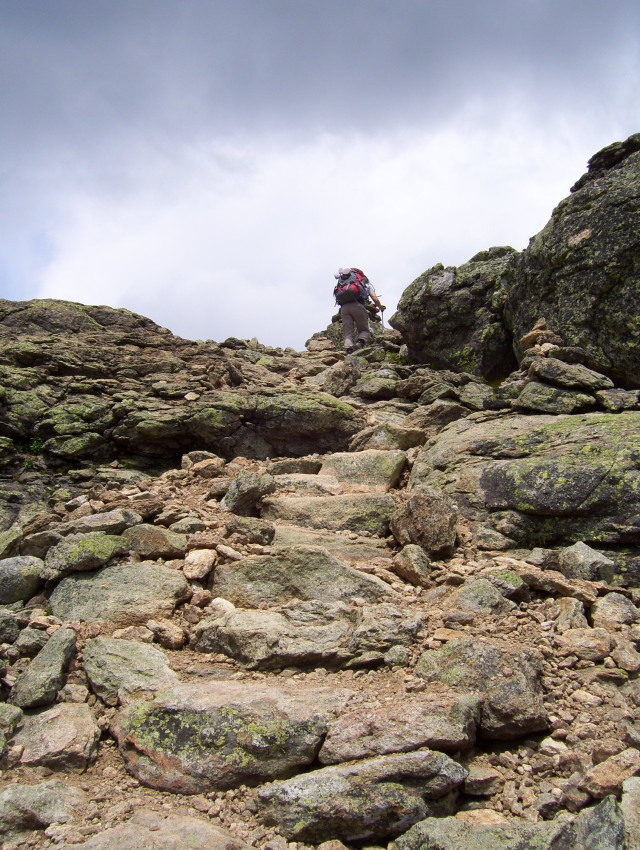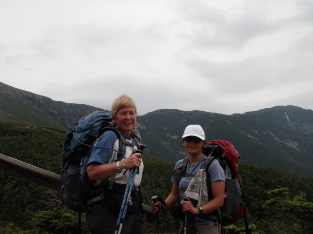We also ate dinner with 2 very nice guys who were AMC volunteers. Bill was the information volunteer who told us that the next days hike would be the toughest section. GREAT!!!!! We also met Yves who was the Alpine Steward volunteer – he educates people about the fragile alpine vegetation on the mountains.