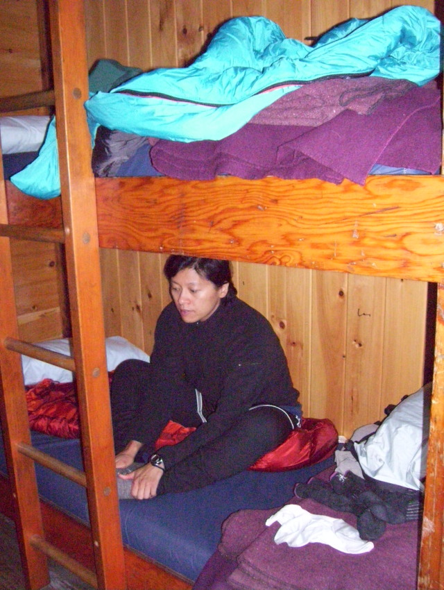 Once we got into the hut we both picked bottom bunks in the bunkroom. We got cleaned up and changed into our camp clothes.