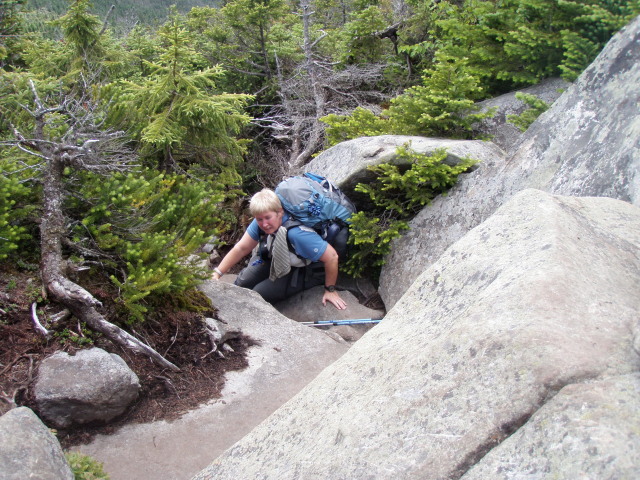 It reminded Python of the climbing we did in Maine last year in the 100 mile wilderness. Lots and lots of boulders that we had to hoist ourselves up over. Dirigo had to take her pack off once because Python had gotten up and over OK, but Dirigo got stuck, so she threw her pack up to Python and kind of went up backwards. It was pretty comical.