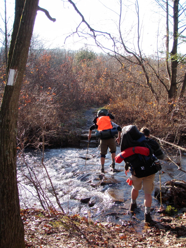 The first part of this hike was done last year as a short hike with Indigo. We hiked from Rt 443 to the second road crossing of Rt 443. The small stream was running pretty high and some hikers with big packs were crossing as we came to the stream.