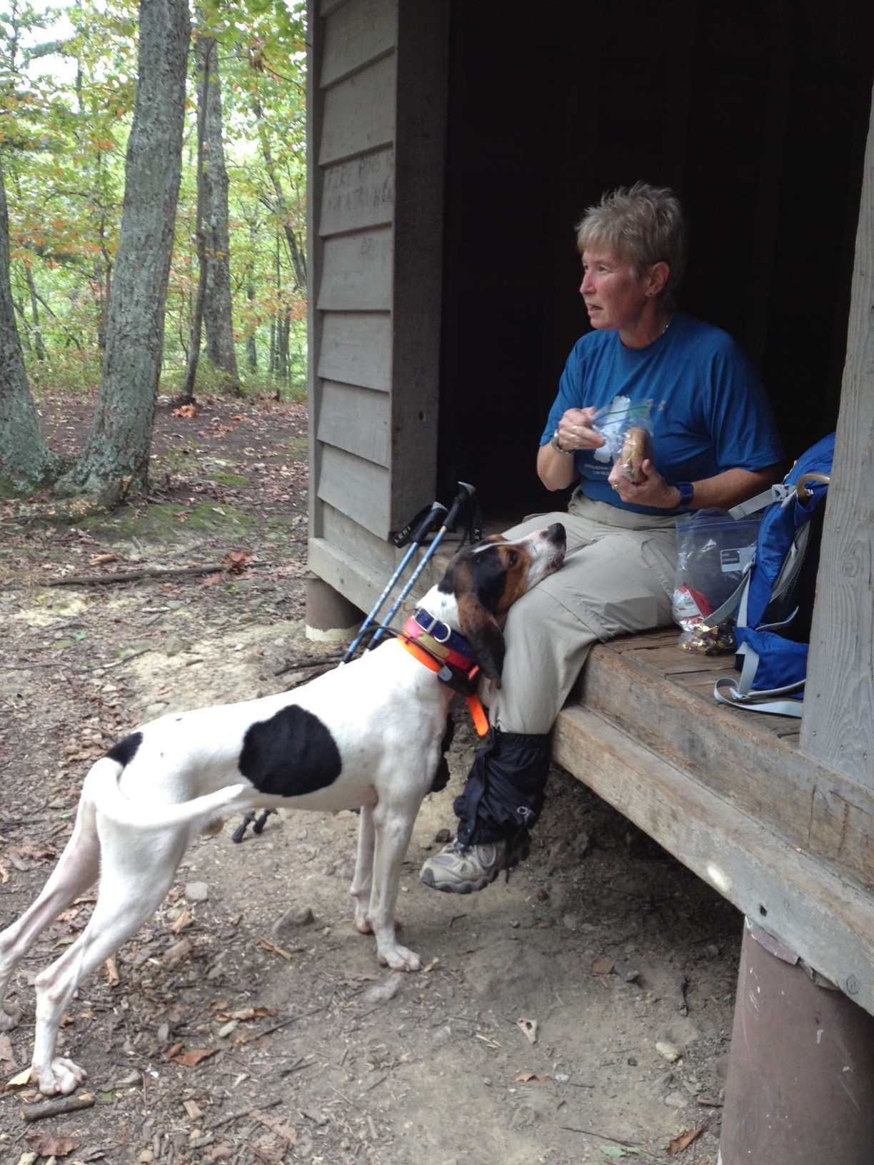The bear hound wound up following us all the way to to Wilson Creek Shelter. The name on the hound’s collar was Preacher and he also had 2 radio tracking collars.