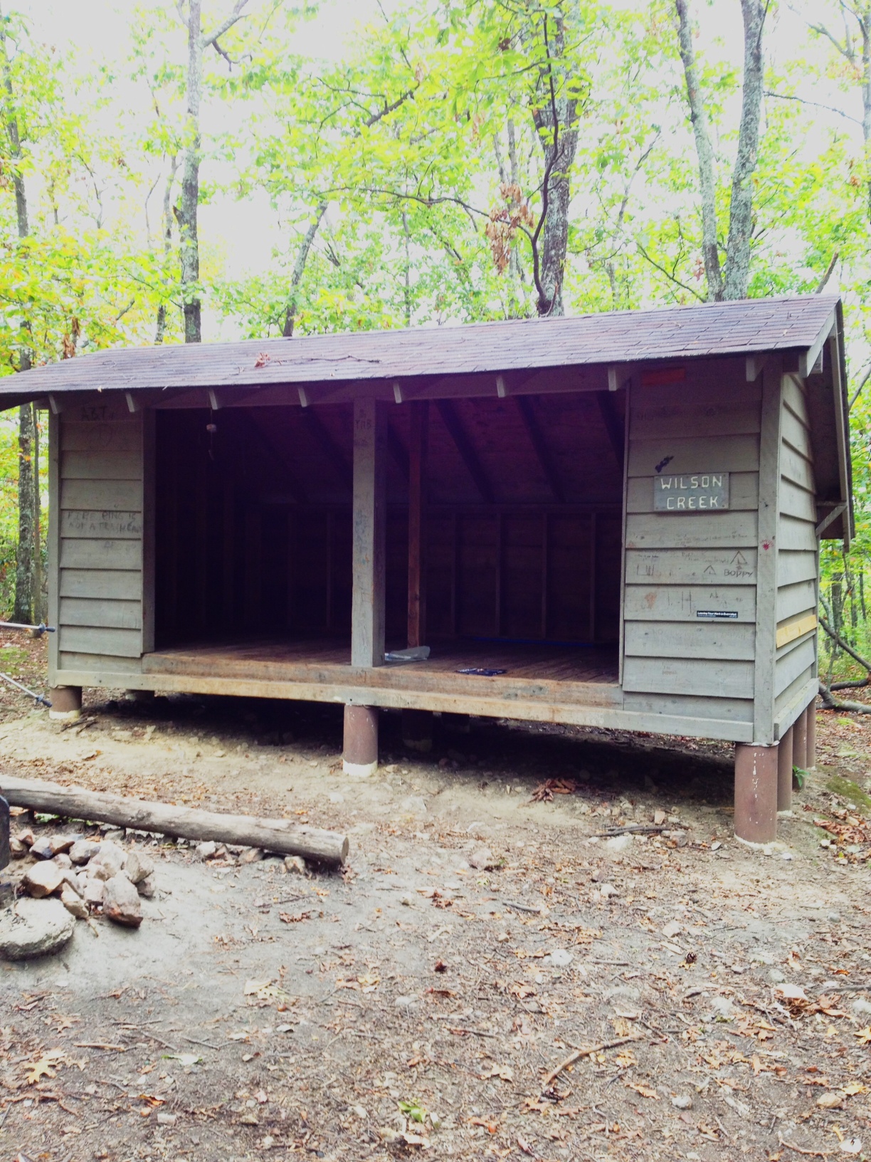 We ate lunch at Wilson Creek Shelter and quickly got cold because we were sweaty and there was a slight breeze.