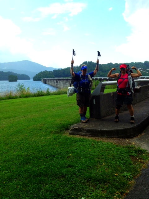 The descent to Fontana Dam was long, steep, and hot, hot, hot. We started to hear thunder and felt a few sprinkles as we got close to the hard-surfaced road.