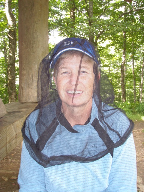 There were bugs and bees around the shelter. At one point we both put on our bug nets to get some relief.