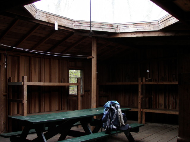 Python, B Squared, and Dirigo started the hike by taking the blue blazed trail to the 501 shelter. We had read that you could order pizza at this shelter and that a caretaker lived next to the shelter. The shelter was very nice and clean and had a bulletin board with take out menus from local restaurants.