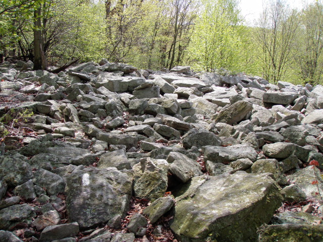Once we got back onto the AT, the bugs started to dive bomb our faces so we all doused ourselves with bug dope. The trail started off nice and easy but then we soon encountered the famous PA rocks.