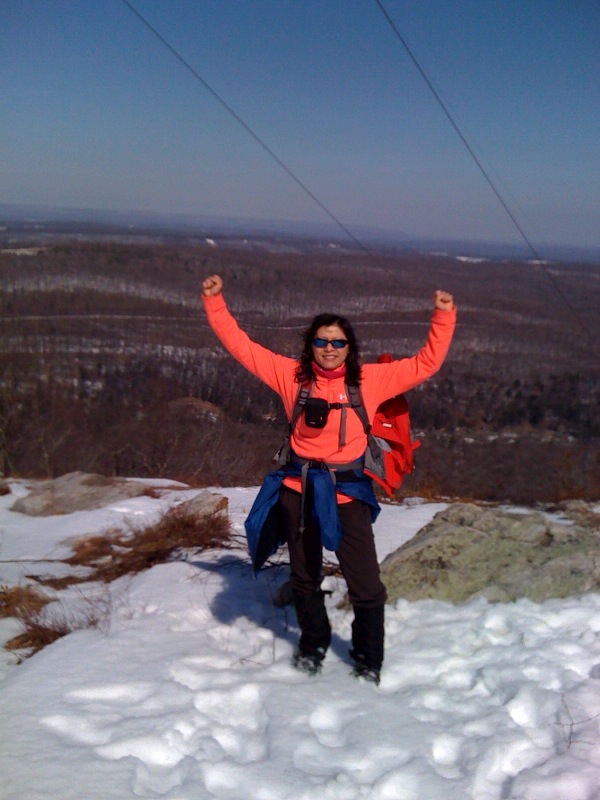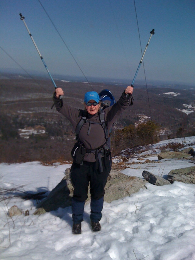 We decided to forgo going to Lookout Rocks as we didn't know how long this hike might take. We went off to the side of the ridge where the path was very narrow and icy. We both pulled ourselves up over some rocks and came to Hahn's overlook. It was a very beautiful day and you could see for miles.