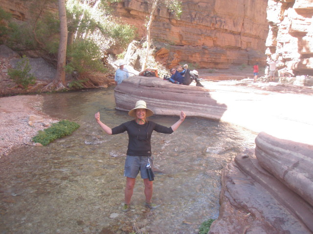 The guides read us a story and then adventurous people attempted to Spider man their way up the canyon wall. Panther stayed put. Tracy attempted to go up a little bit to get some pictures and then came back down.