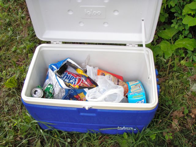 The USFS 63 road is a gravel road and Ken told us there was one section that is always bad because it gets washed out. Fortunately, the bad section was passable and Ken was able to get his car up to the trail head. Some nice person had left trail magic next to the road.