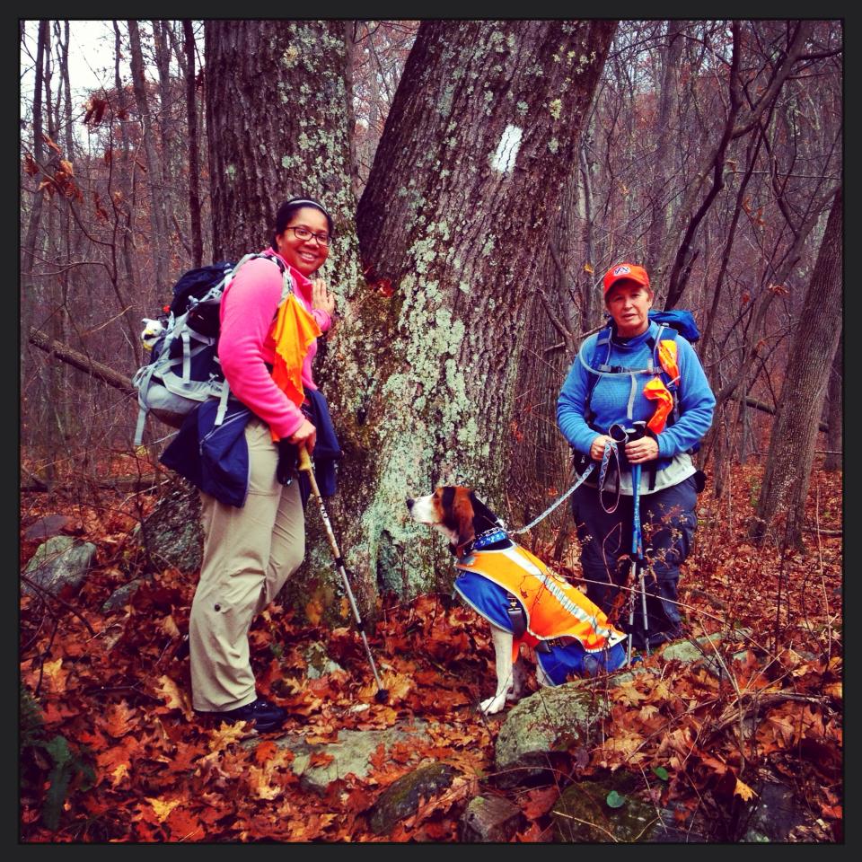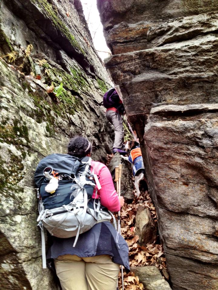We reached the CT “Lemon squeezer” and Velcro did great on the rocks. We even let Velcro off-leash at times because of the slippery and rocky terrain. Fortunately all the dog training with Sit Stay Dog Training paid off and she stayed on the trail.