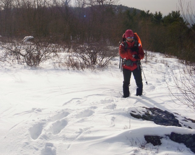 If conditions get too rough, be prepared to look for exit routes. Hiking in the snow from Blue Mountain Lakes Road to Brink Road was much tougher than we expected. We both were exhausted at 2 PM when we reached Brink Road. We had 3.5 more miles to go but we wisely decided to bail.