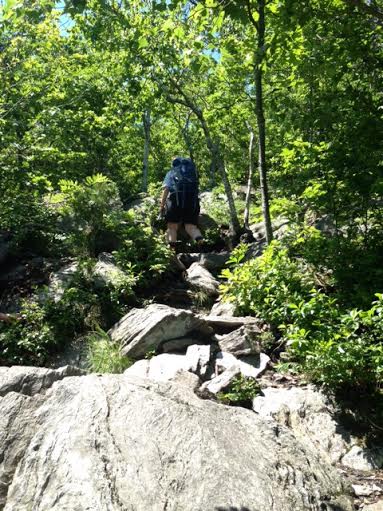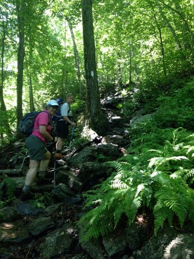 We quickly reached the AT after 22 minutes and turned right to head south. We were excited to climb Bear Mountain. The trail was very rocky and water was coming down the trail – kind of like a waterfall. The trail reminded us of parts of New Hampshire.